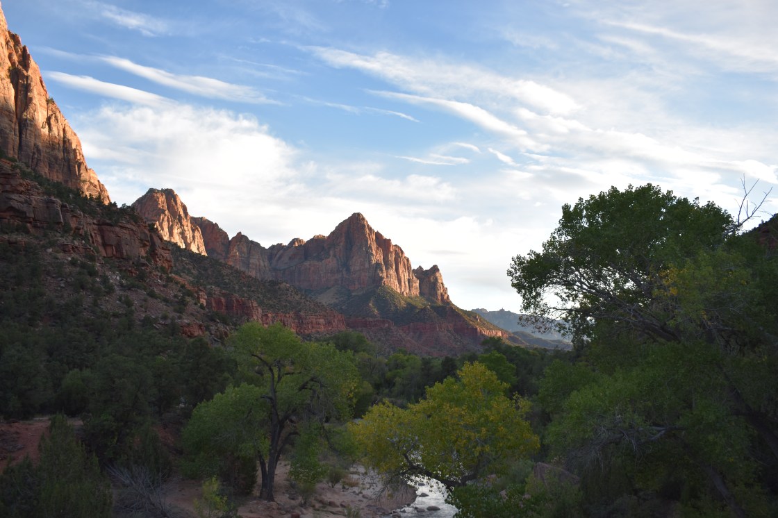 This park is the #8 most visited park so I bet a lot of you reading this have some of the same pictures I do! I must admit driving around between Nevada and Utah I forgot about the time change. I was driving in from Great Basin and forgot two critical things. One – the time difference, and two that the sun sets earlier in a canyon. I still was determined to get a quick hike in before heading back though so I hopped on the shuttle and I managed to snap a picture even I still can’t believe I got. What you cannot see in this picture is the hundreds of people set up here with their cameras trying to capture this moment! I took this picture out the window of the moving bus on a bridge. I couldn’t have gotten a better picture if I had been trying.