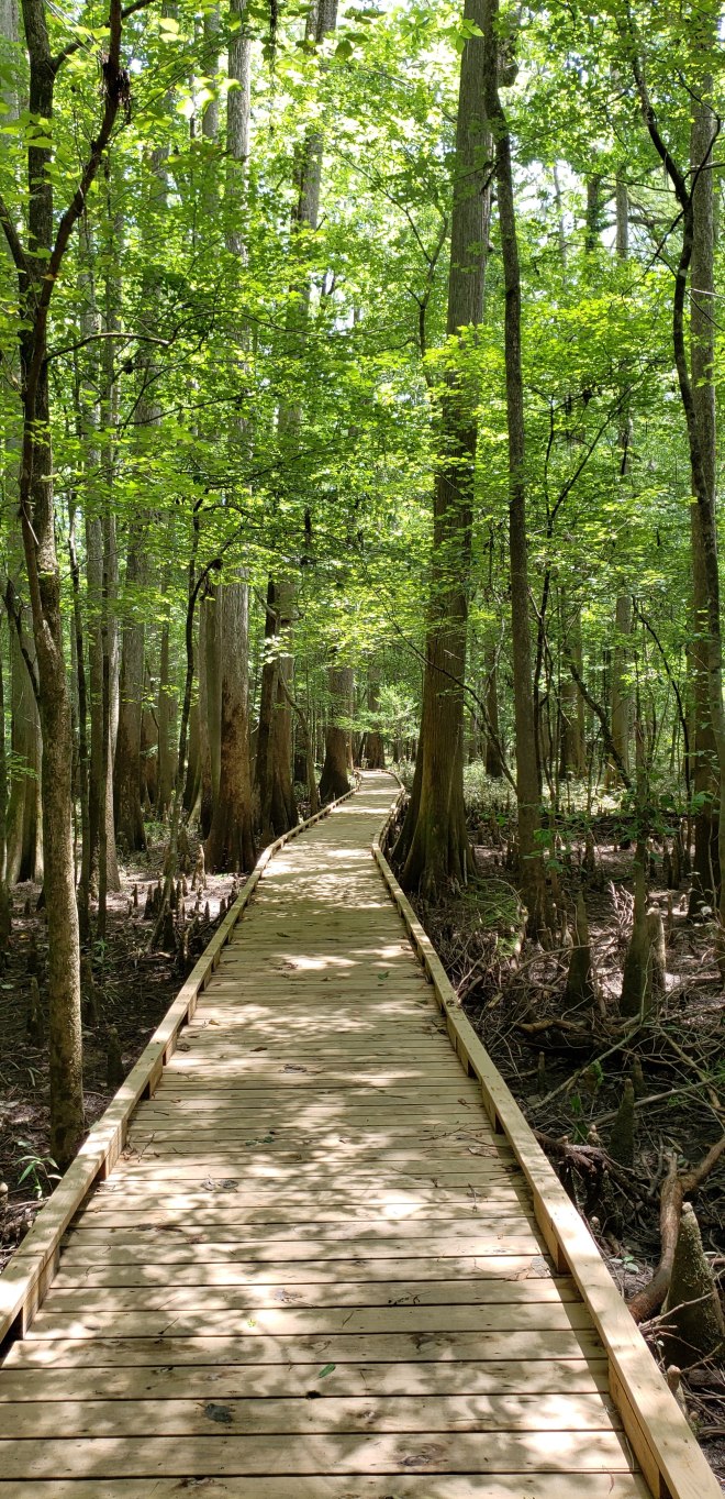 I had the pleasure of seeing this park when it was 95 degrees, 90% humidity, and the mosquito meter was a 5 out of 6! Needless so say I hike with long sleeve, long pants, and a ton of bug spray-Mosquitos love me! I was originally planning on doing a slightly longer hike, but decided against it because of the temperature. I did the boardwalk hike, which is about ~2.3 miles.