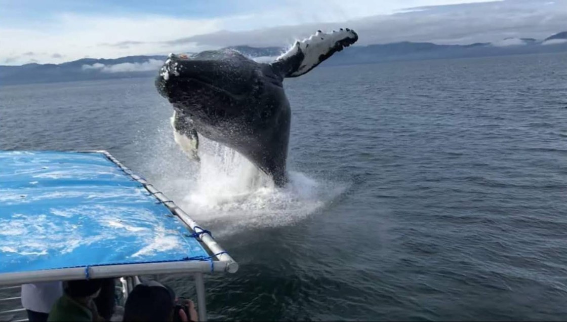 Now the moment everyone is waiting for, the whale breach! Everyone has asked me what it felt like to be right next to this. We had only been out for about 30 minutes, and we were following this pod of whales at a pretty safe distance (>100 yards). After they came up to feed, they started to head towards us but they were still pretty far off. I was taking a few pictures of them diving when out of nowhere this one flew up out of the water. I learned that I have zero reaction time. Everyone else sort of ran away a little in the video and I just stood there completely stunned. Took zero pictures, but luckily the guy behind me was taking video the whole time!