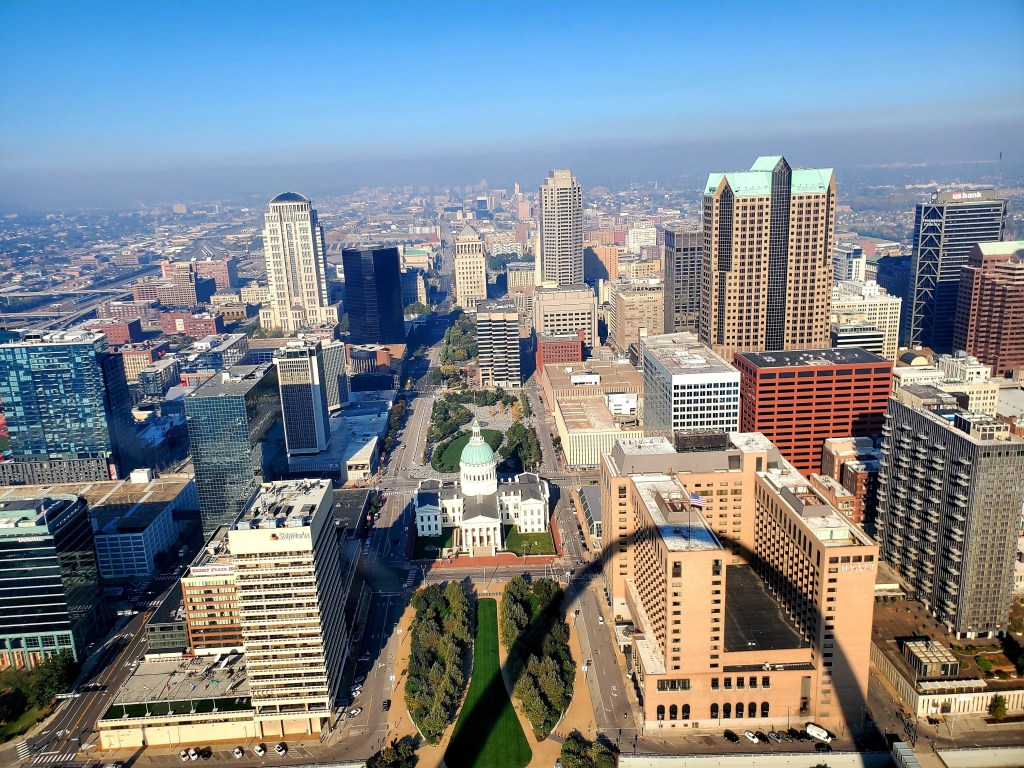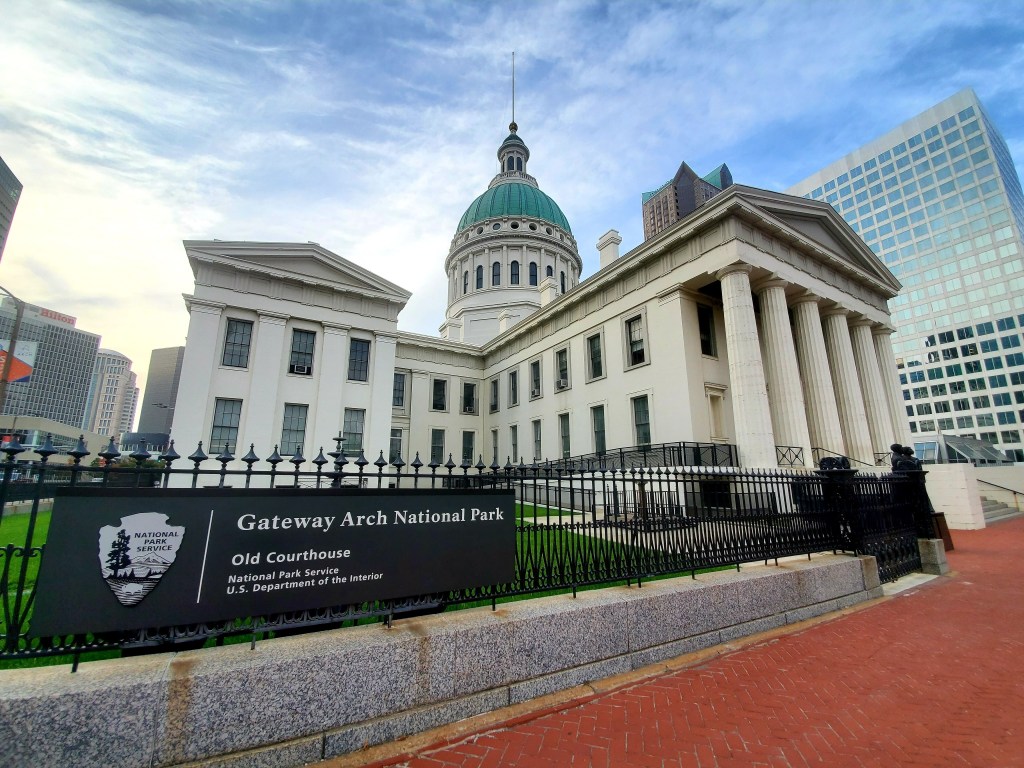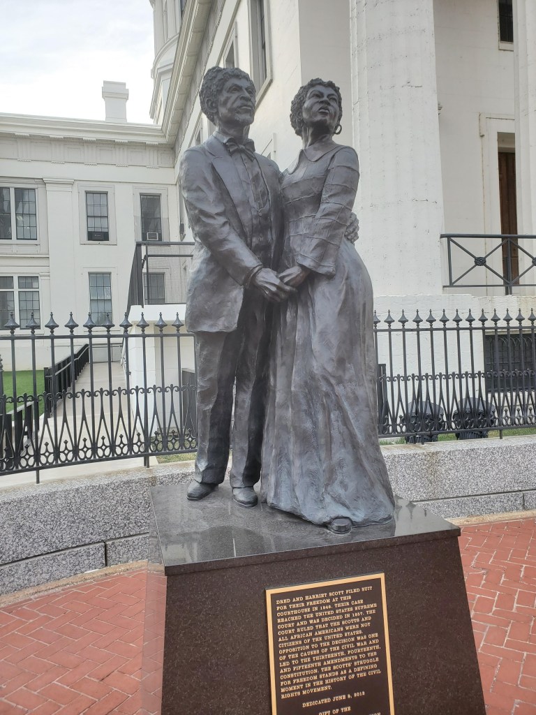 I stayed right in downtown St Louis at the Hilton – chosen for being walking distance from the arch. The first thing I got to see was the Old Courthouse. This building was closed for repairs but several signs noted it as one of the sparks for the Civil Rights Movement. This was the location of the famous Dred Scott case, where he sued for his freedom, along with his wife and two daughters. A statue depicting him and his wife is in the picture below!