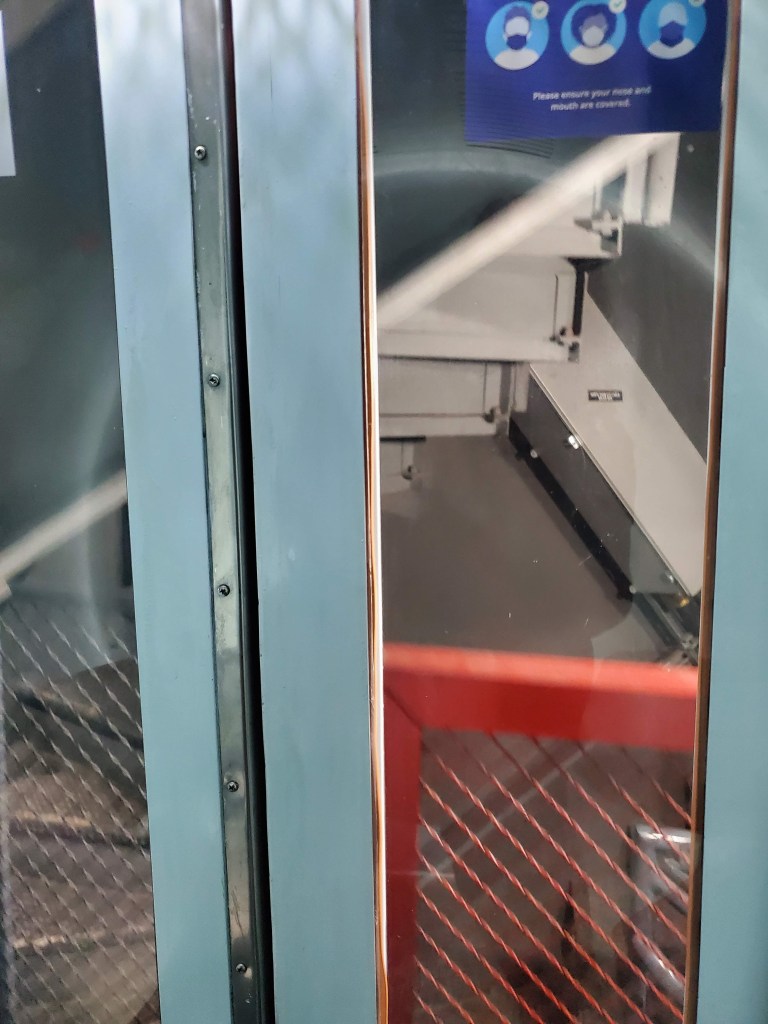 As someone who often struggles with a fear of heights this was not my favorite place. The shape is the same as the arch – the trapezoid – with tiny windows you can view through. Another COVID bonus was that with the social distancing rules we had this top area all to ourselves! We each got our own window on each side of the arch.