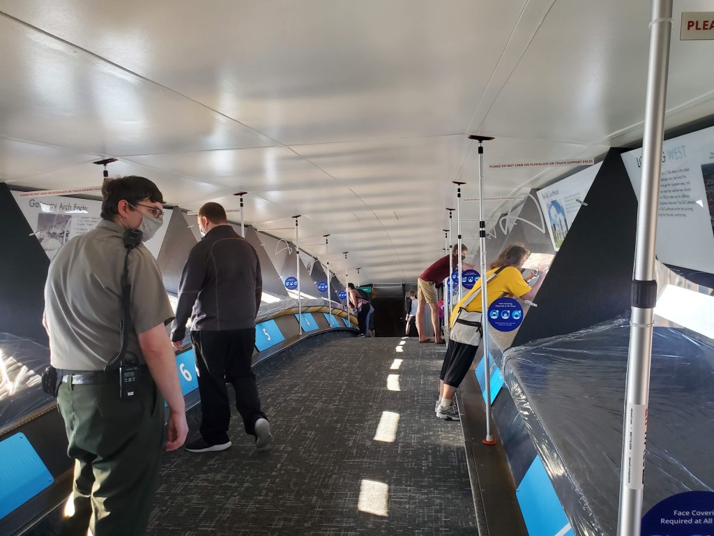 When I was imagining the tram ride in the arch prior to my arrival I can guarantee it was nothing like what I actually saw! If you’ve never been, here is a sneak peak. They have you line up on these stairs at the different number locations. Normally I think they would have PACKED us in these little cars – but with social distancing I got one all to myself.