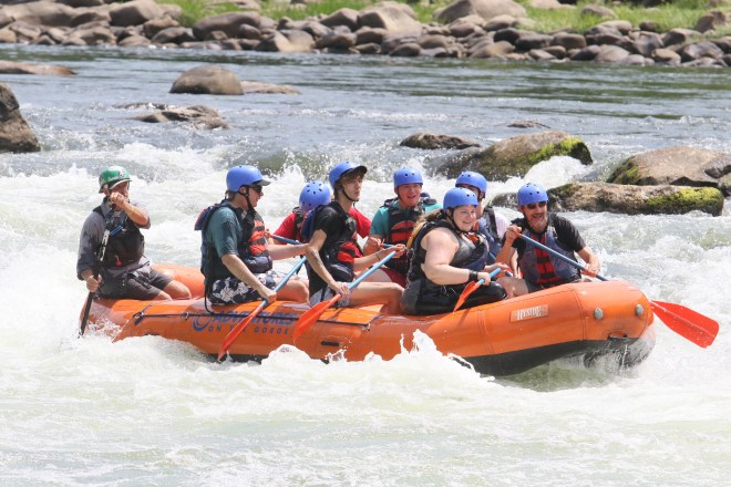 I made two slide shows of the rapids the photographer captured. I love looking at everyone’s faces. Some of us have done this before – and remembered how ridiculous we looked last time. Made more of an effort to not look scared out of my mind 🙂