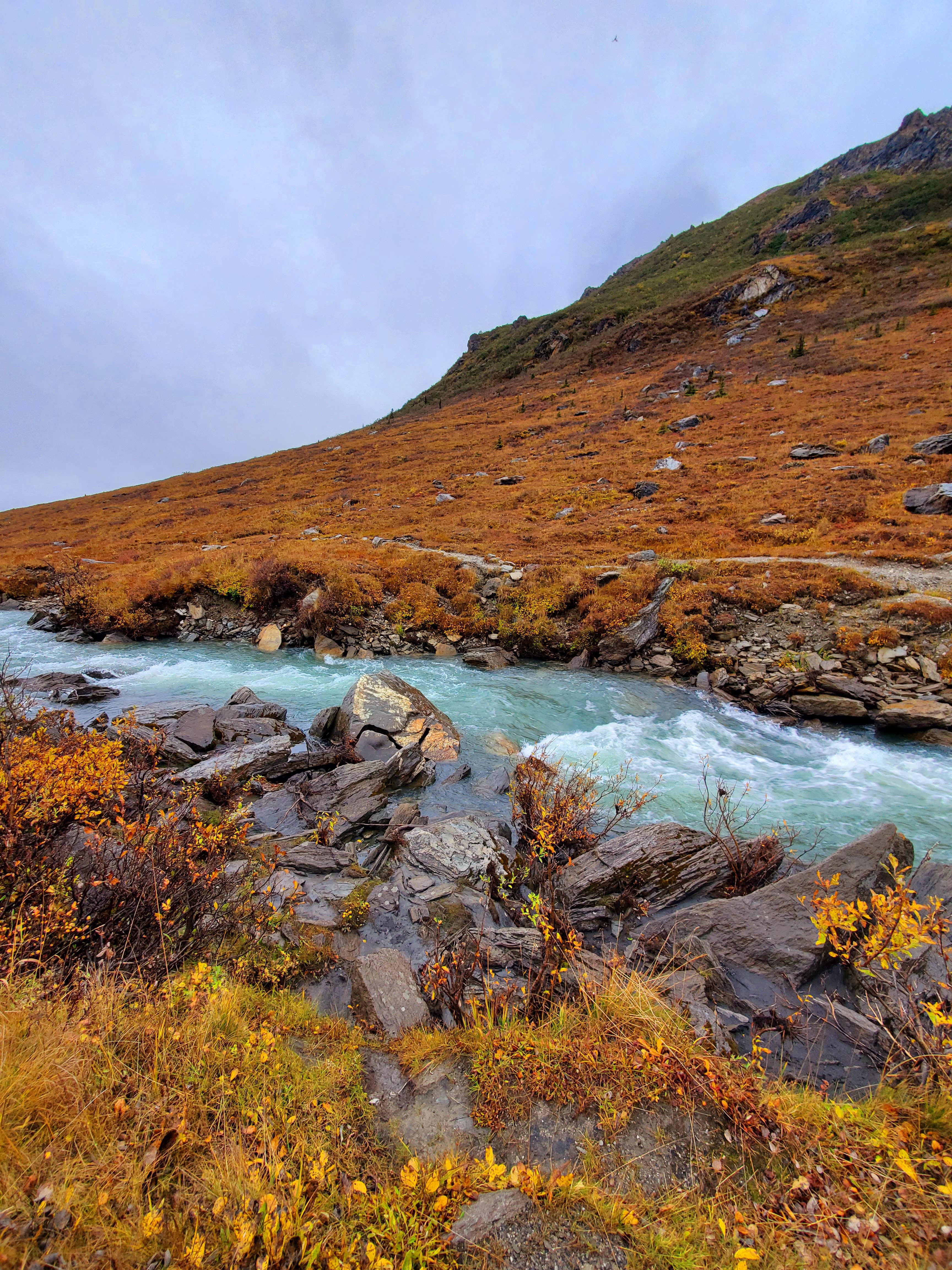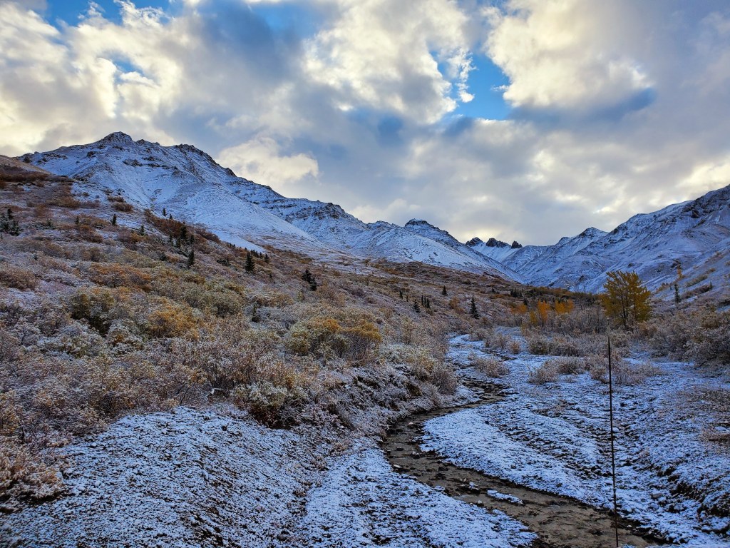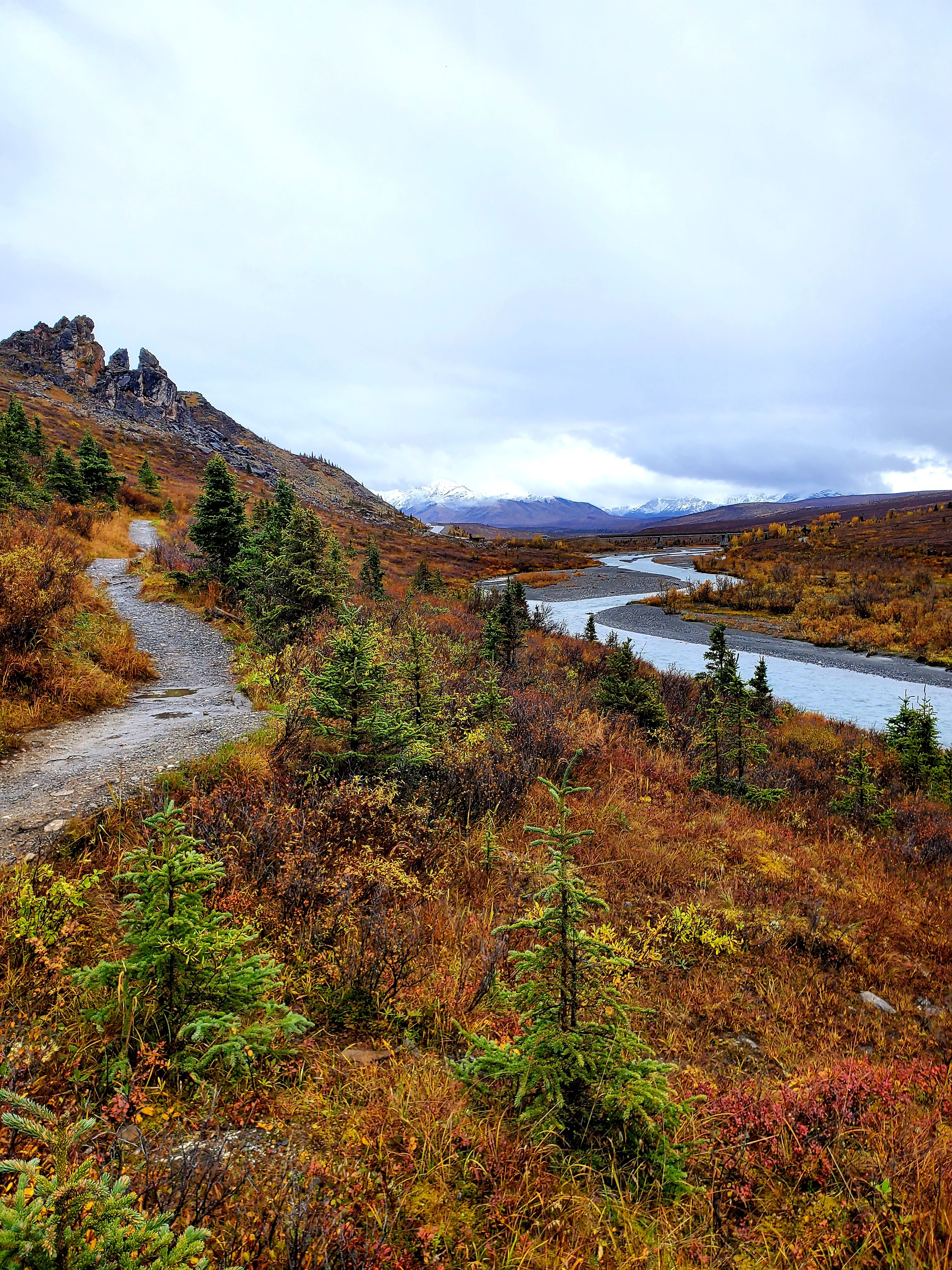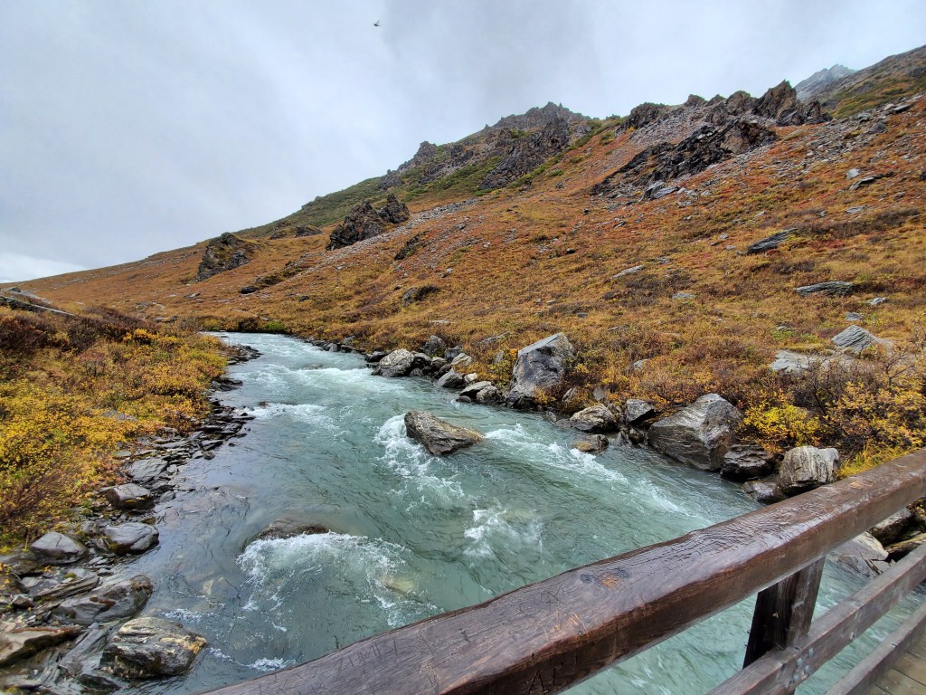 Once we reached the end of the road for people without special permits, we decided to do the Savage River hike. Despite the cold, rainy weather this hike was a great chance for us to stretch our legs and explore some trails. The color of the landscape and the river really popped with the overcast sky.