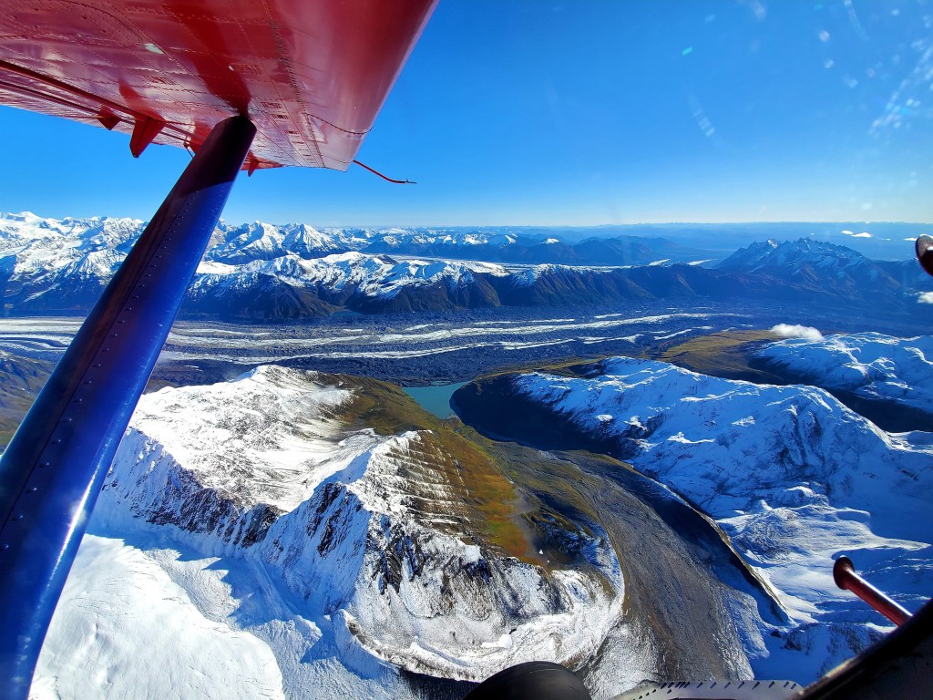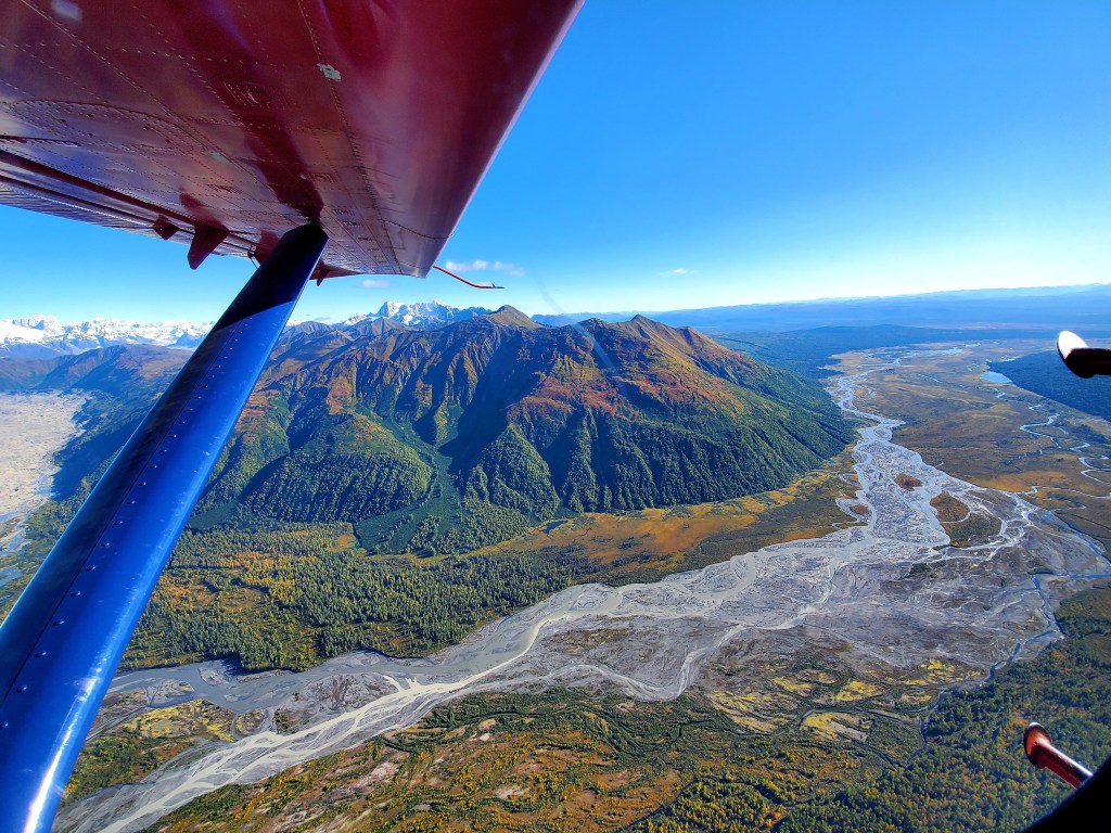 I love this vantage point too. Not too far from here the base camp for Denali can be found during the climbing season. Fun fact – our pilot is one of the few people to summit Denali twice within 6 days!