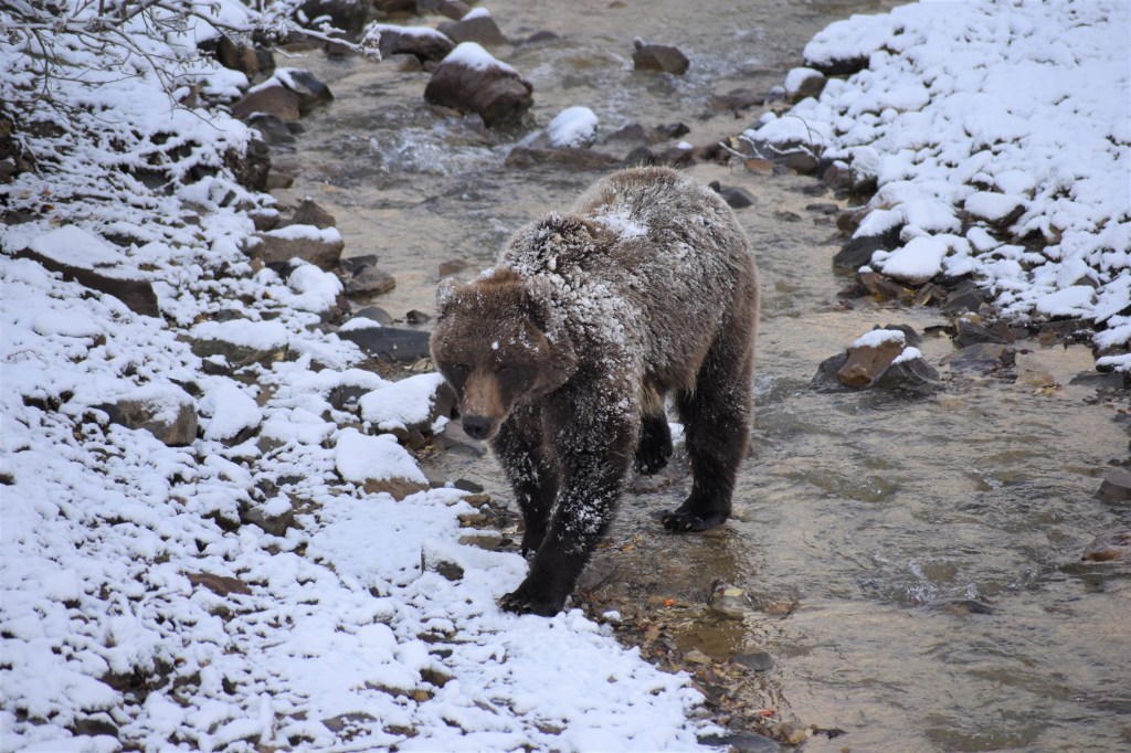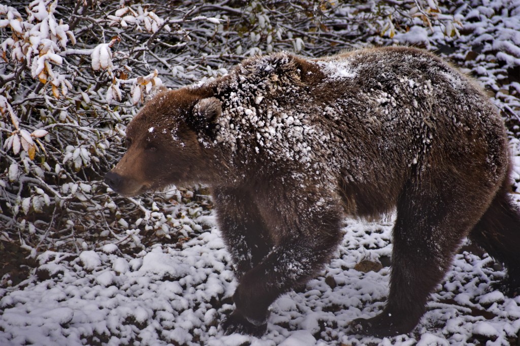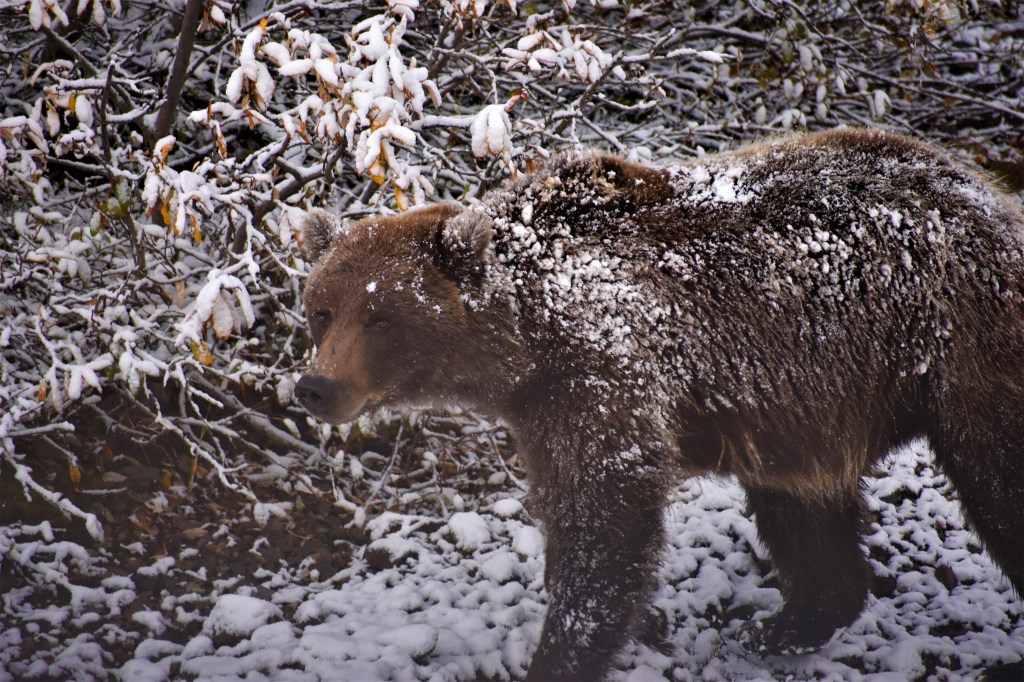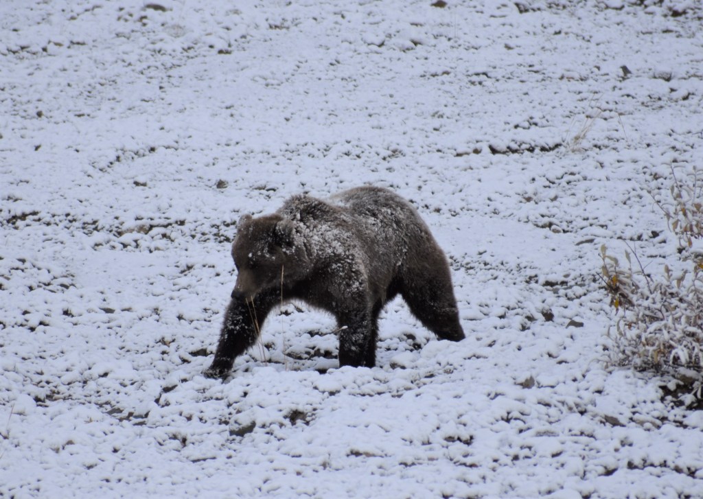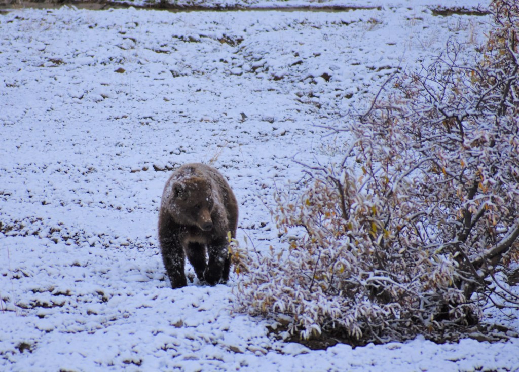 Our first grizzly spotting of the trip. We saw this show down happening real time. We all thought we might be about to see the circle of life at its finest, but our guide enlightened us that bears won’t typically chase down big game like this. They will try to target the weak or injured, but for everything else it simply isn’t worth the energy to try.