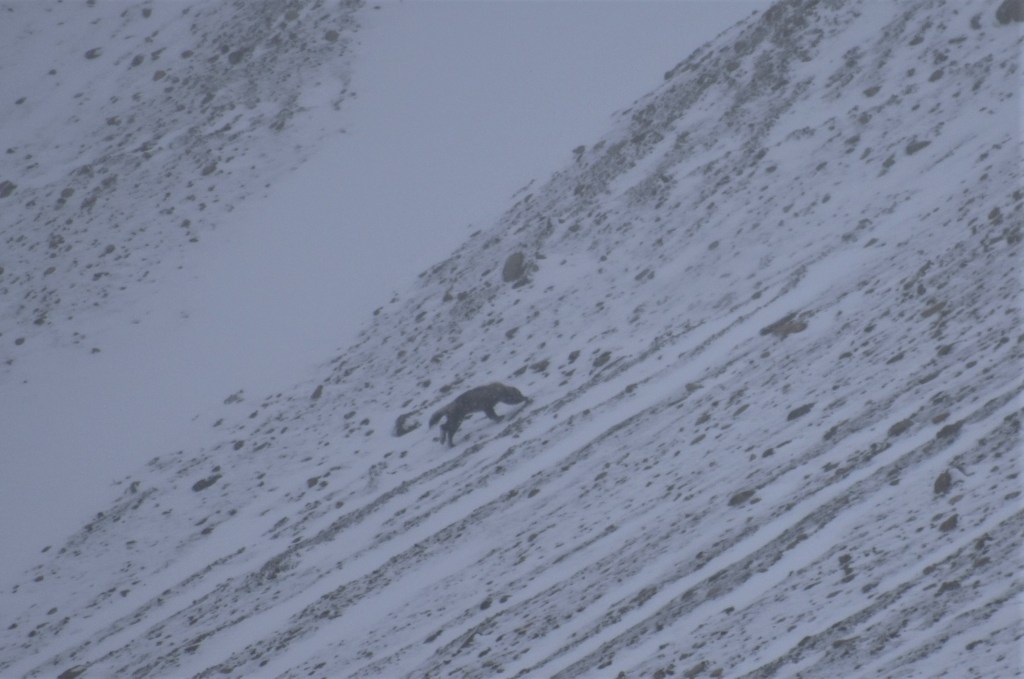 Now here are two pictures that were hotly debated during our tour. The guys sitting behind me spotted an animal running up the side of the mountain. We all assumed it was a bear, I snapped a few pictures but figured they wouldn’t turn out. The question had to be asked though – why would a bear be running up the side of a mountain?? Another guy chimed in saying he thought it had a strange gait for a bear. When I inspected my photos more closely we saw what you can see above – a long tail trailing behind him! We now firmly believe it was a wolverine!! These animals are SUPER rare which is why few of us believed it at the time. Not great quality but still serves as proof!!