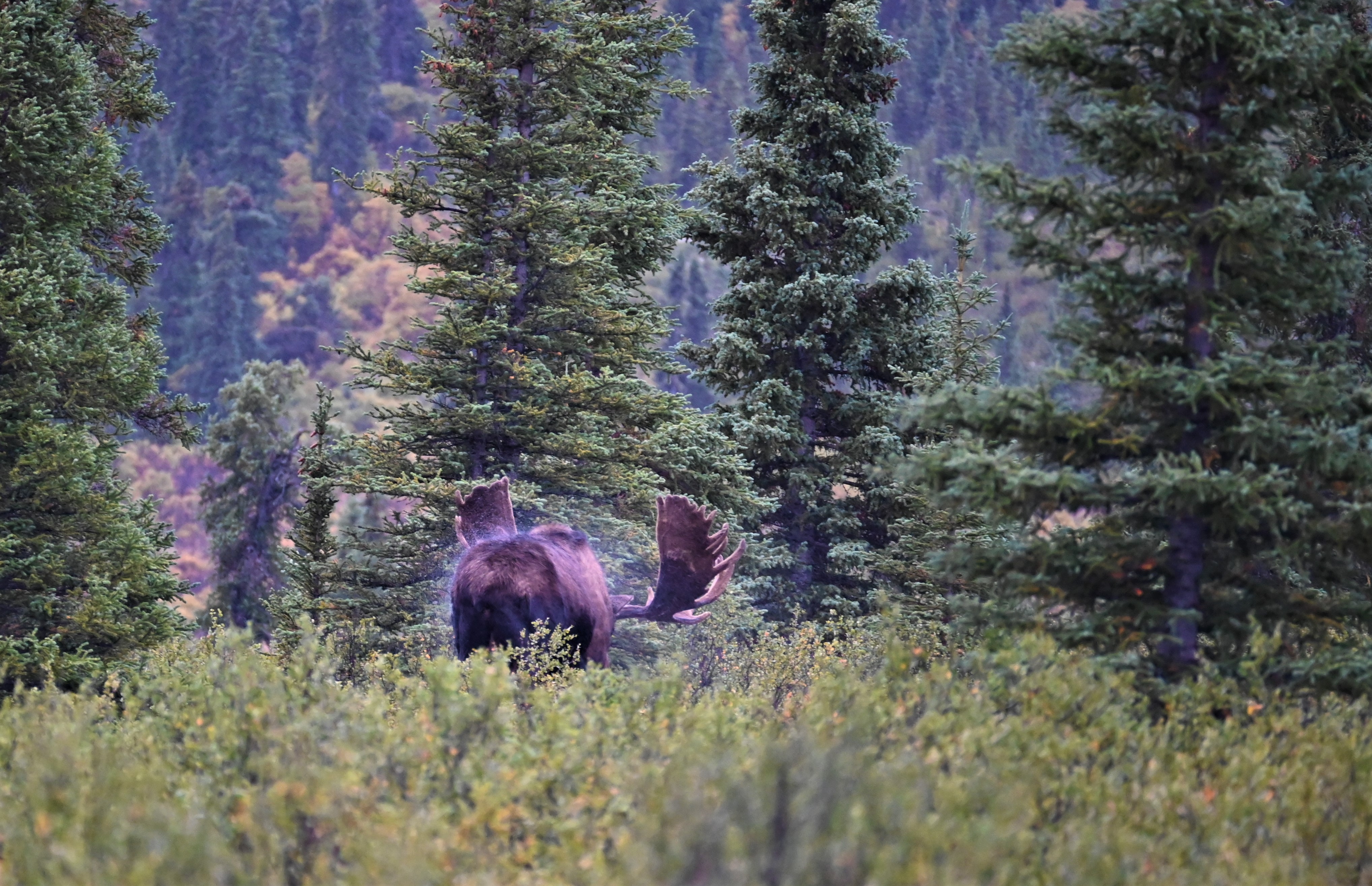 As our first wildlife sighting we saw another bull moose! Equally terrible focus – clearly I did not learn from my mistakes the night before. May have been the same one from the night before.