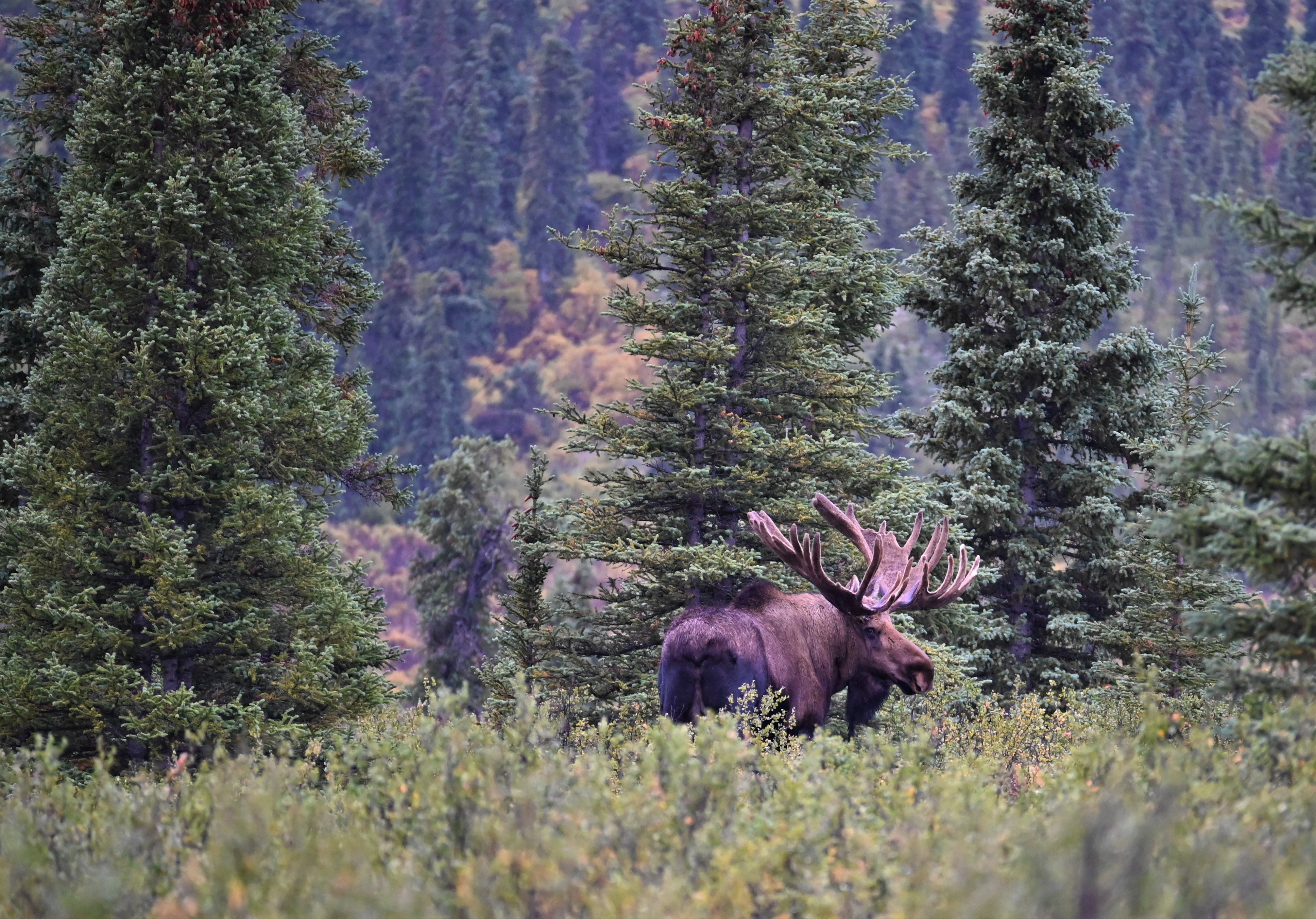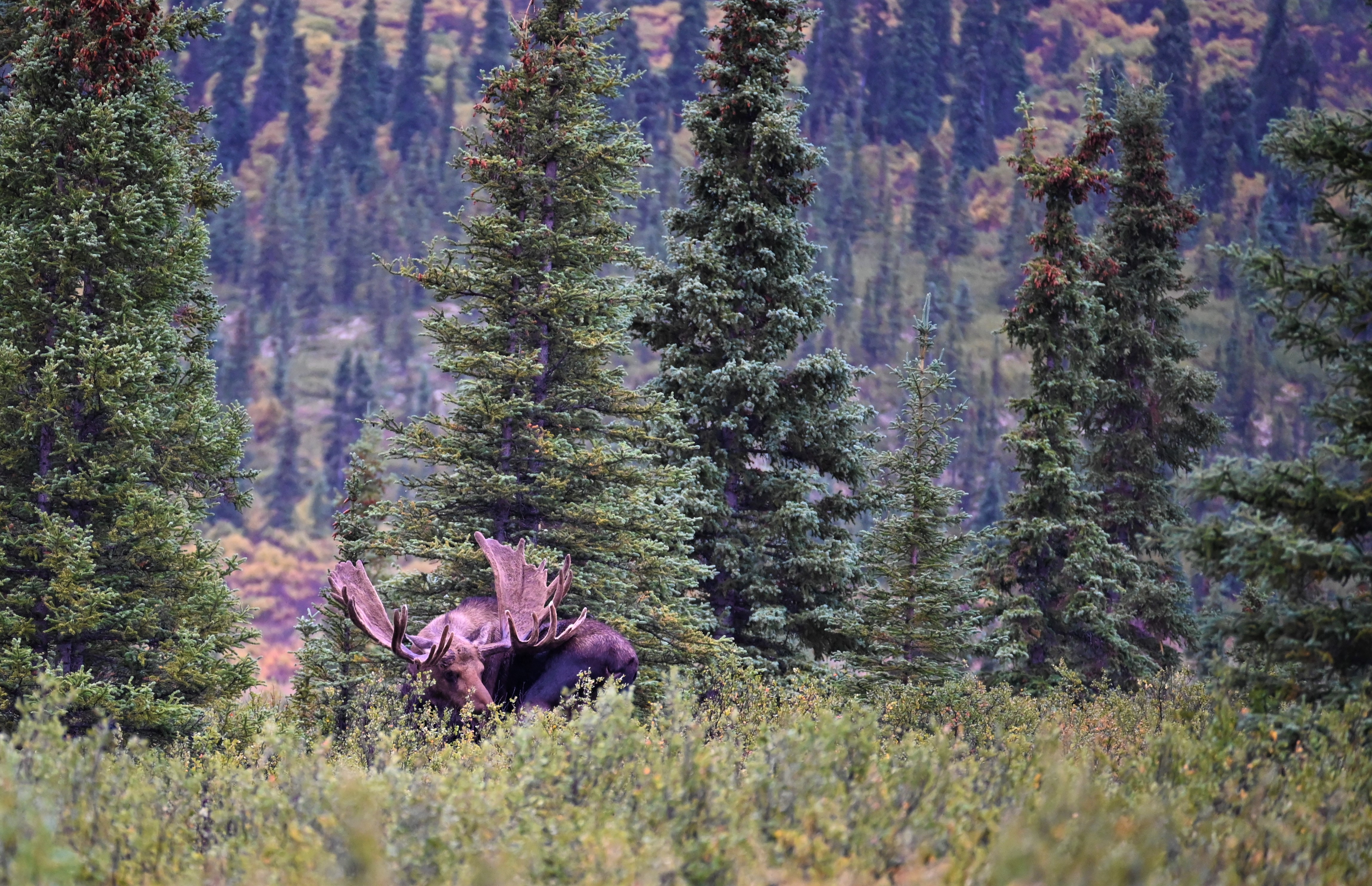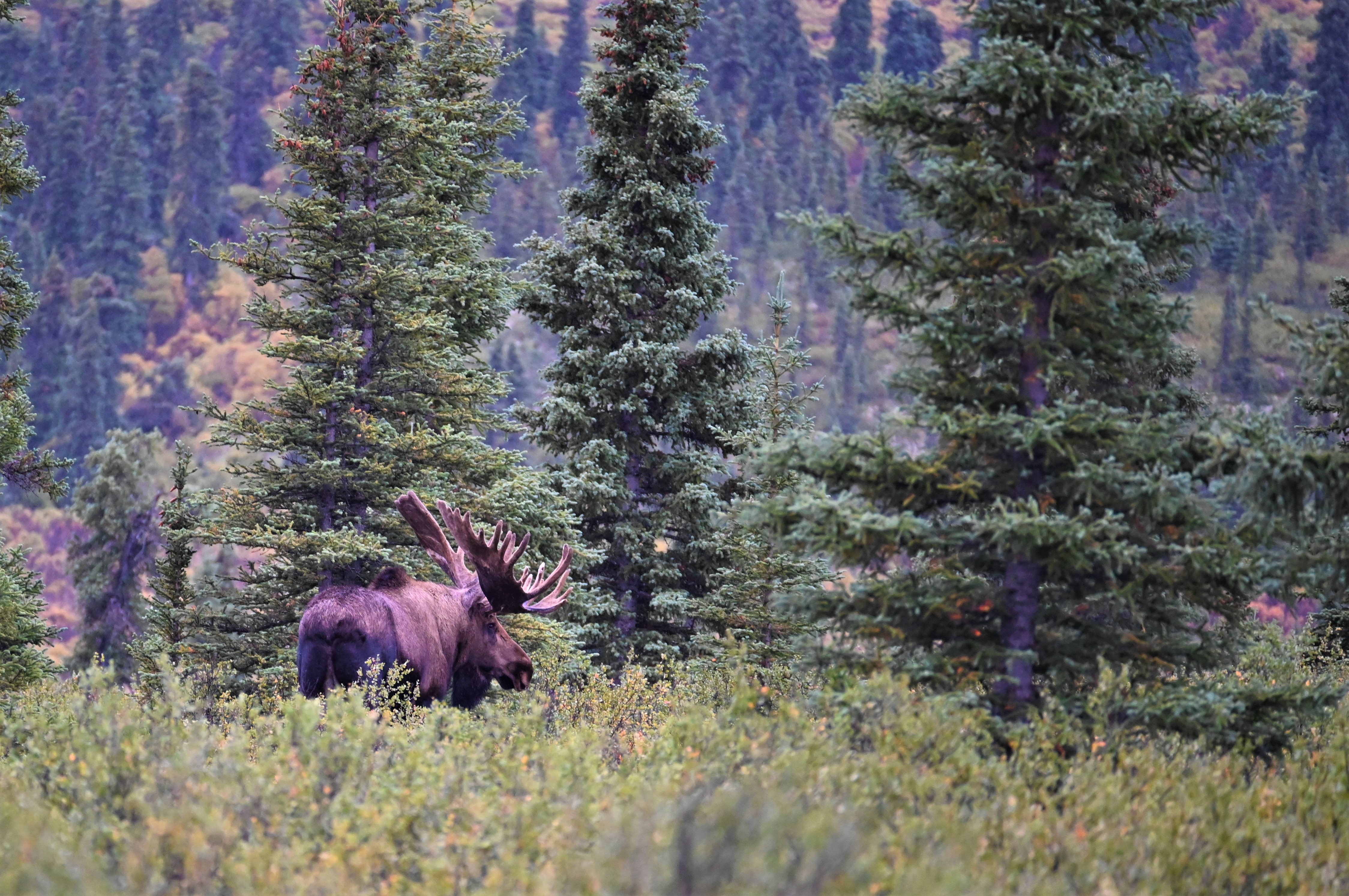 Our final wildlife sighting of the tour – we caught a female running across the road and into the woods. I didn’t get any solid pictures, but here is one of her jogging back into the brush. The shortened bus tour ended up being a blessing since we had a long haul down to Seward!