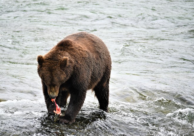 This one above is one of my favorites. Just because he is mid-fish snack, slobber and blood all over his mouth! Man it was incredible to see these bears so close in their natural habitat!