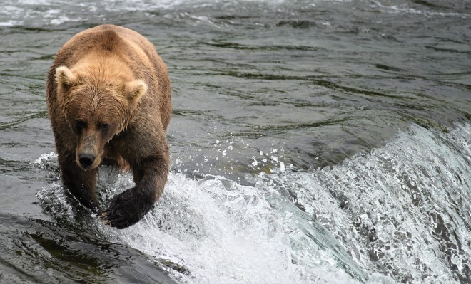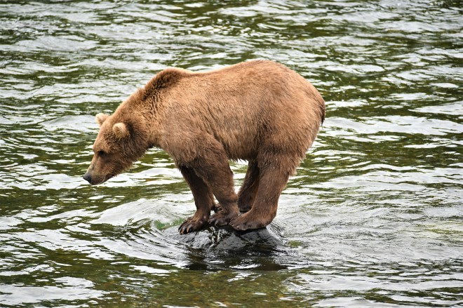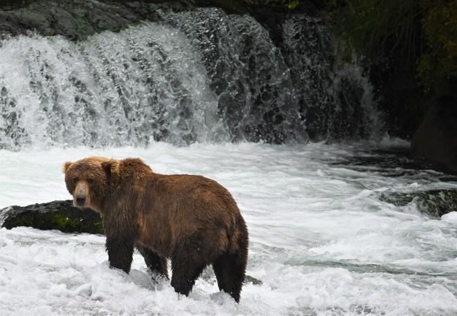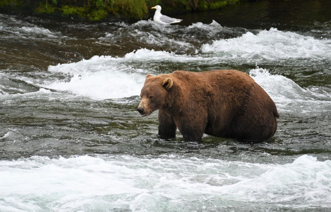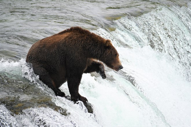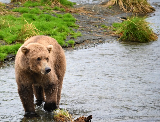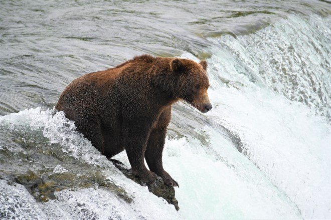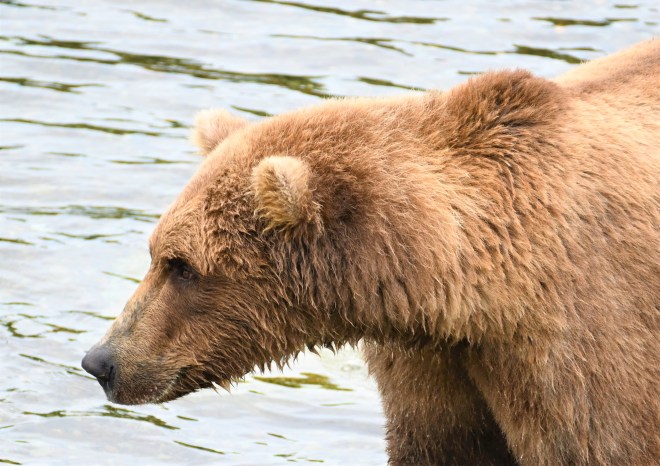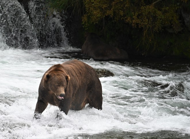 There are a few pictures of this blonder bear. He was very active, walking around the lower falls. Clearly hadn’t fought and won a prime spot for fishing, but still got some great shots!