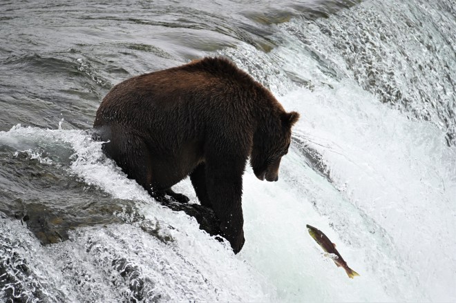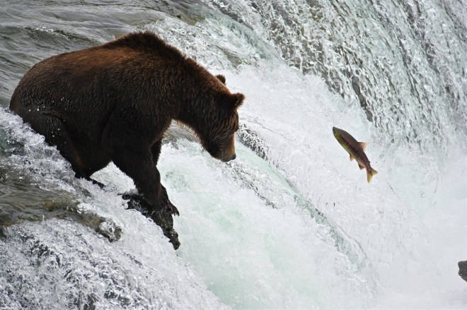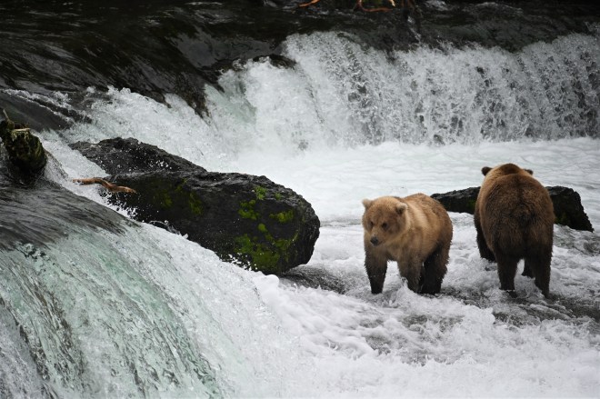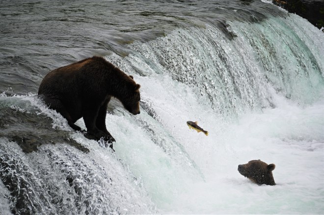 I love this one too – kind of looks like they are both watching this salmon fly through the air!