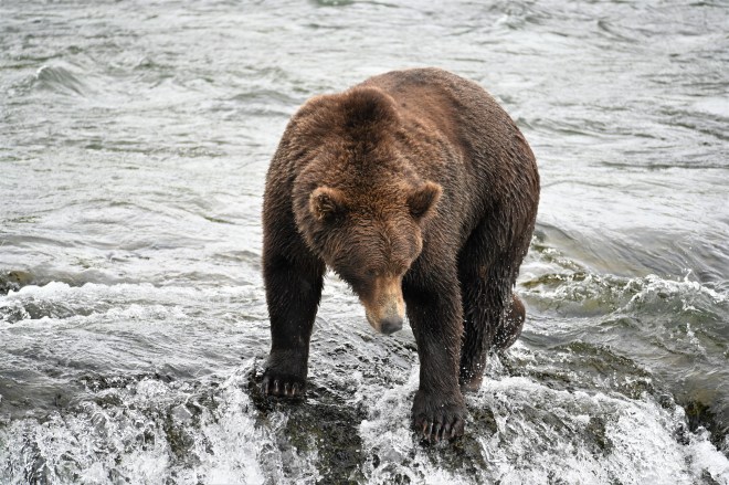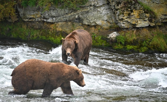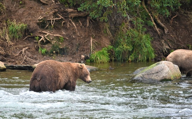 I am almost positive one of these CHUNKY bears won the contest for fattest bears in Katmai this year. These guys were MASSIVE! It was kind of comical watching them climb down the bank.