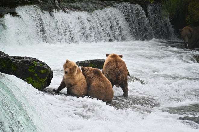 When our flight landed in Katmai – we had to circle around 3 times! Bears kept coming out onto the beach and playing and hanging out. This was so cool to see – and a great indication of the number of bears I would see on this trip! Skip ahead to Brooks Falls! I hiked over and immediately got to capture some of the greatest pictures of my life!